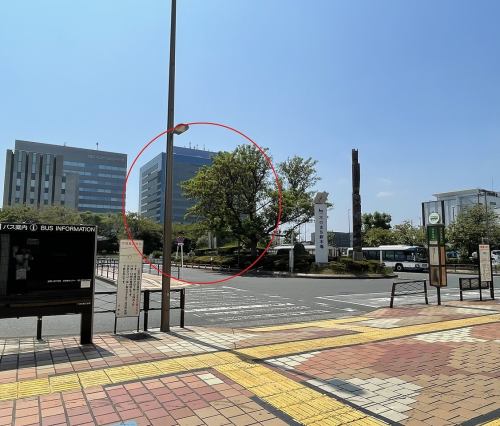 Walk straight along the main street, cross the intersection and you will find yourself in front of the building.Please go through the automatic doors and enter the building!